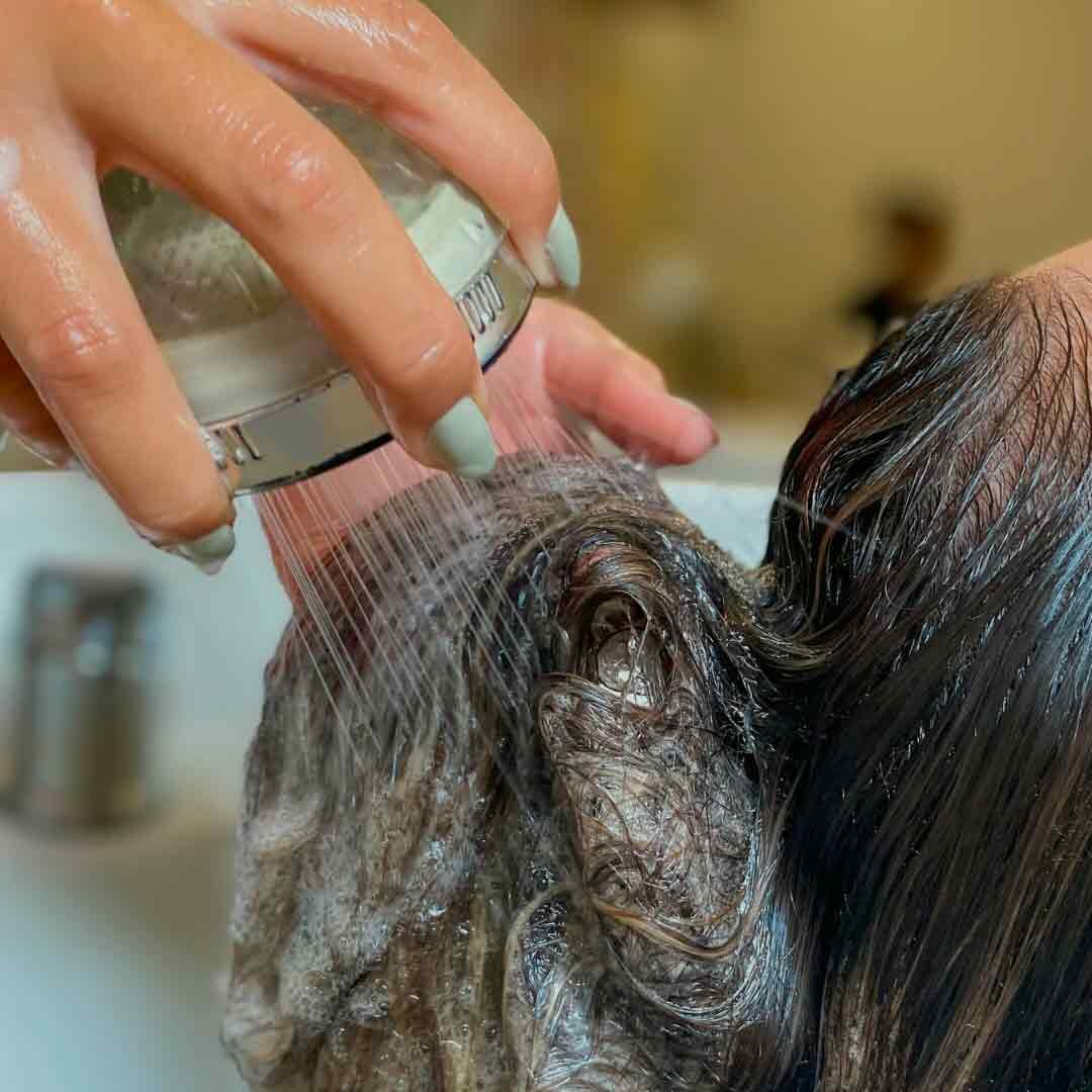 Lavagem com shampoo hidratante.